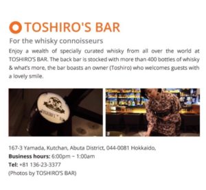 TOSHIRO’S BAR was included as one of the Niseko Pick Ups in the article.