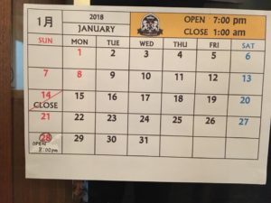 TOSHIRO’S BAR is closed today.